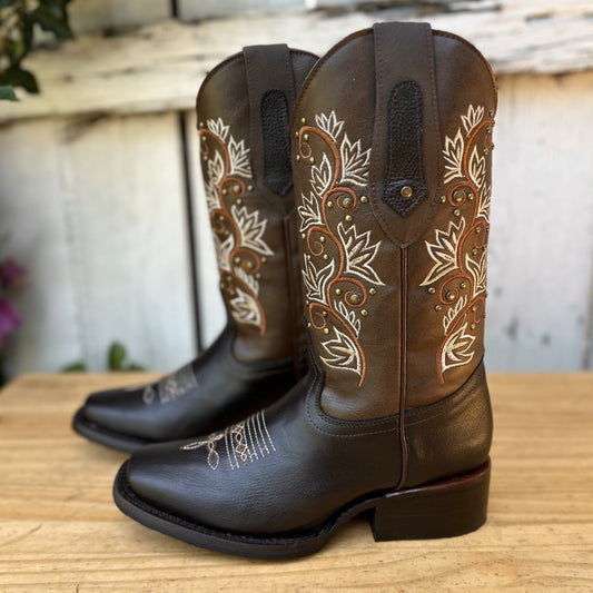 DV-815 Bordado Lasso Choco - Botas Vaqueras para Mujer