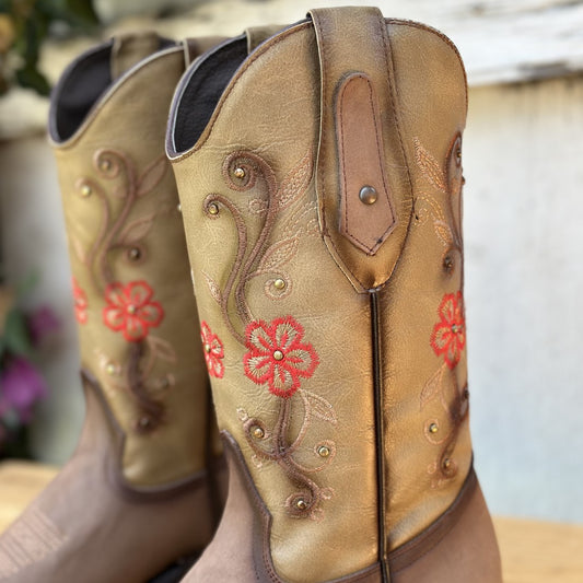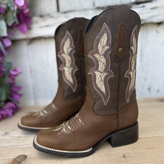 JB-1502 Cafe y Rosa - Botas Vaqueras para Mujer