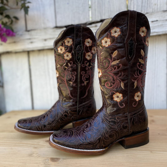 JB-1609 Cafe - Botas Vaqueras Cinceladas para Mujer