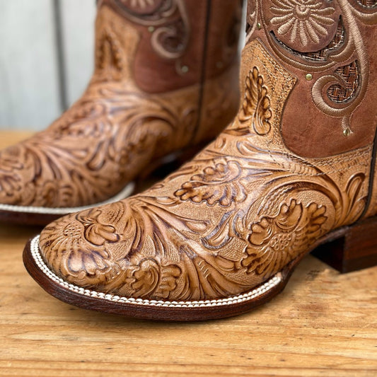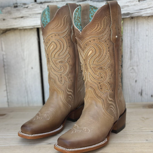 RC-570D Cincelada Natural - Botas Vaqueras Cinceladas para Mujer