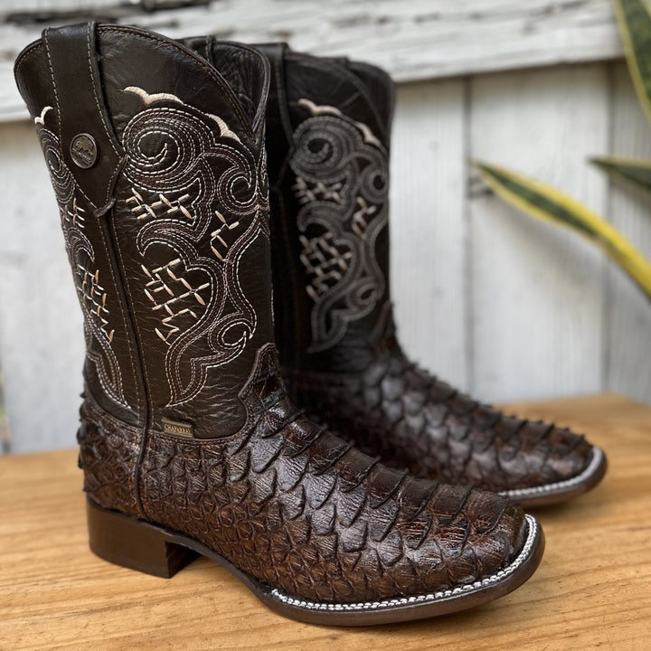 DA-Jefe Pirarucu Imitación Café - Botas Vaqueras Exoticas para Hombre