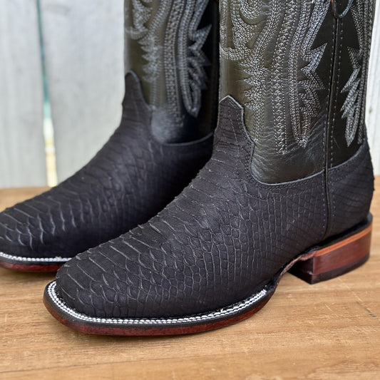 DB-Imitación Pitón Nobuck Negro - Botas Vaqueras Exoticas para Hombre