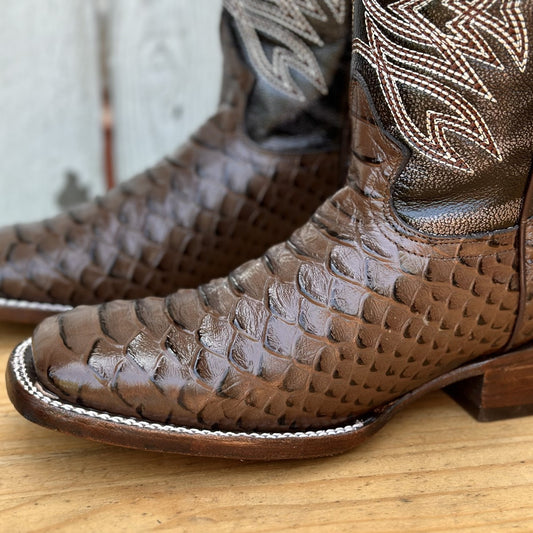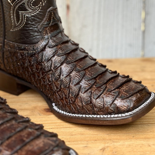 DA-Jefe Pirarucu Imitación Café - Botas Vaqueras Exoticas para Hombre