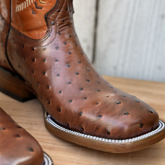 DB-301 Avestruz Imitación Cognac - Botines Vaqueros Exoticos para Hombre