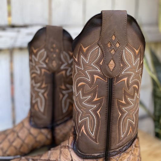 DA-Jefe Pirarucu Imitación Café - Botas Vaqueras Exoticas para Hombre