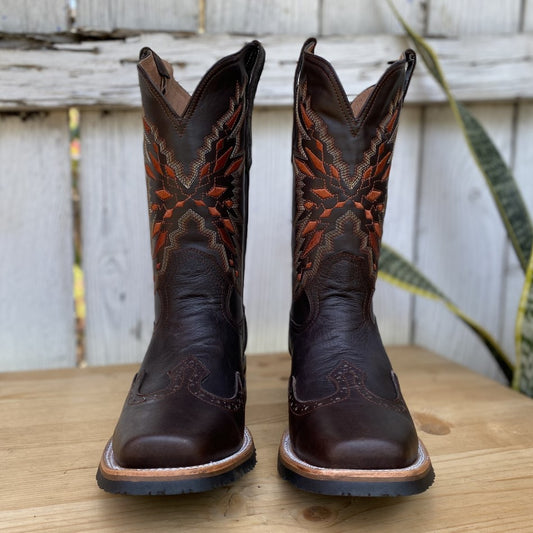 SG-512 Cafe - Botas Vaqueras con Suela de Goma para Hombre