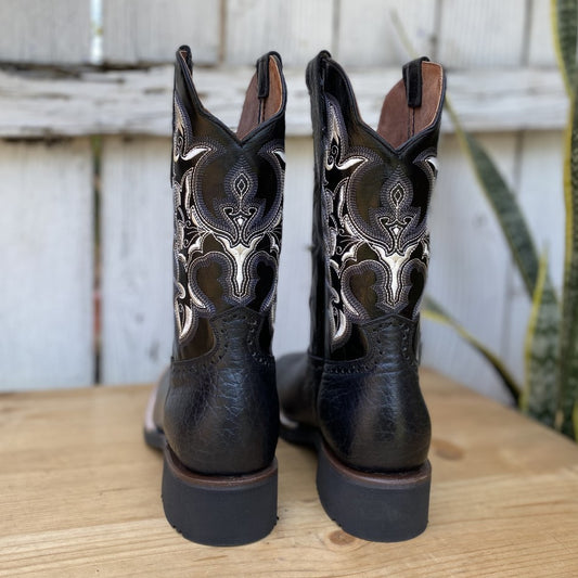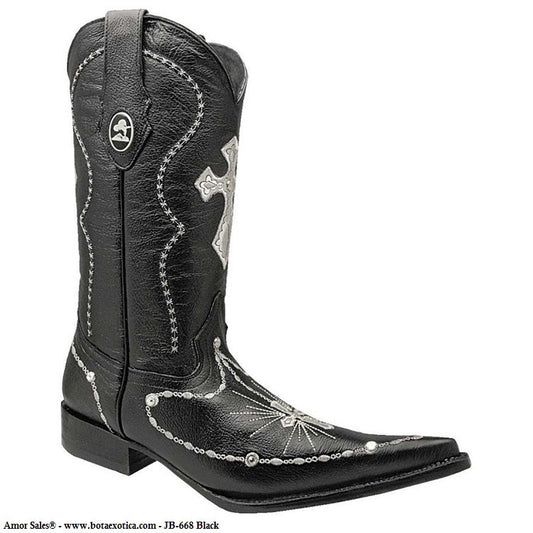 JB-569 Negro con Plata - Botas Vaqueras Cinceladas para Hombre
