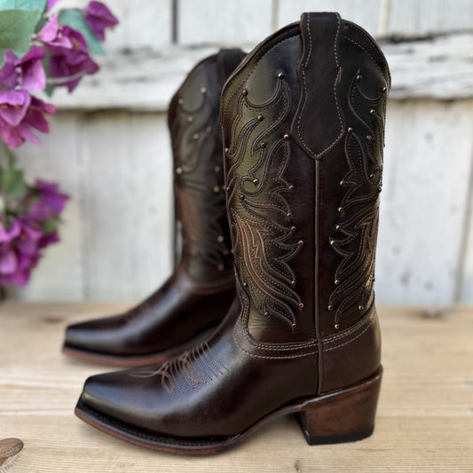 SB-Primavera Cafe Oscuro - Botas Vaqueras para Mujer