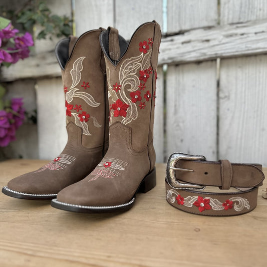 SB-Flores Miel - Bota y Cinto Combo
