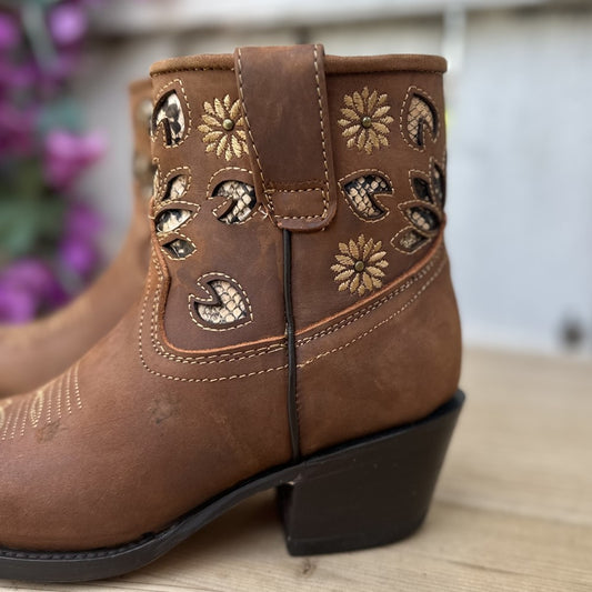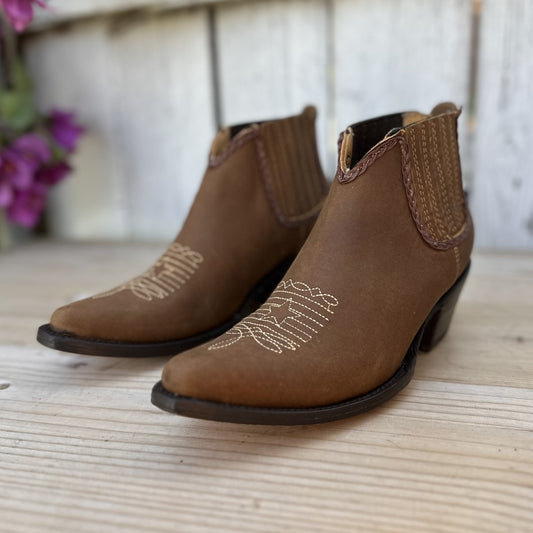 DA-350 Canela - Botines Vaqueros de Nobuck para Mujer
