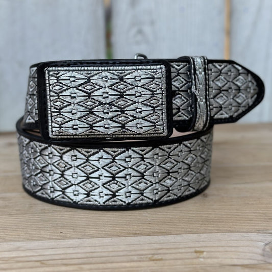 Cinturon Cortado a Láser "Chalino" Plateado - Cinturones Vaqueros para Hombre