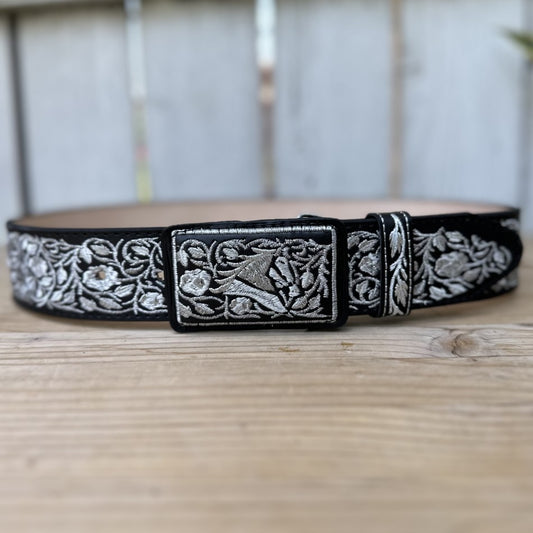 Cinturon Cortado a Láser Rameado Plateado - Cinturones Vaqueros para Hombre