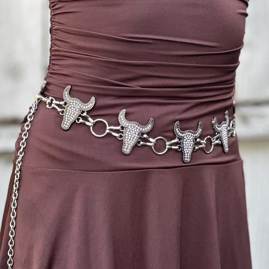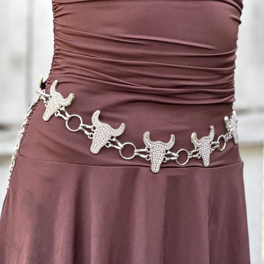 Cinturón Vaquero para Mujer con Conchos de Cabeza de Toro y Pedrería