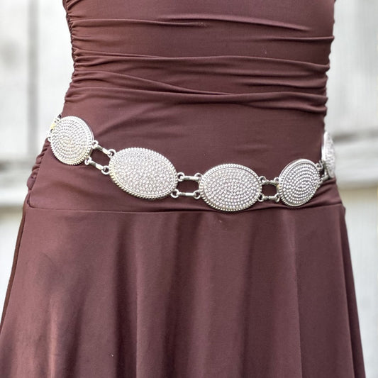 Cinturón Vaquero para Mujer con Conchos Plateados y Pedrería