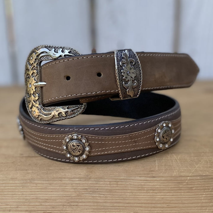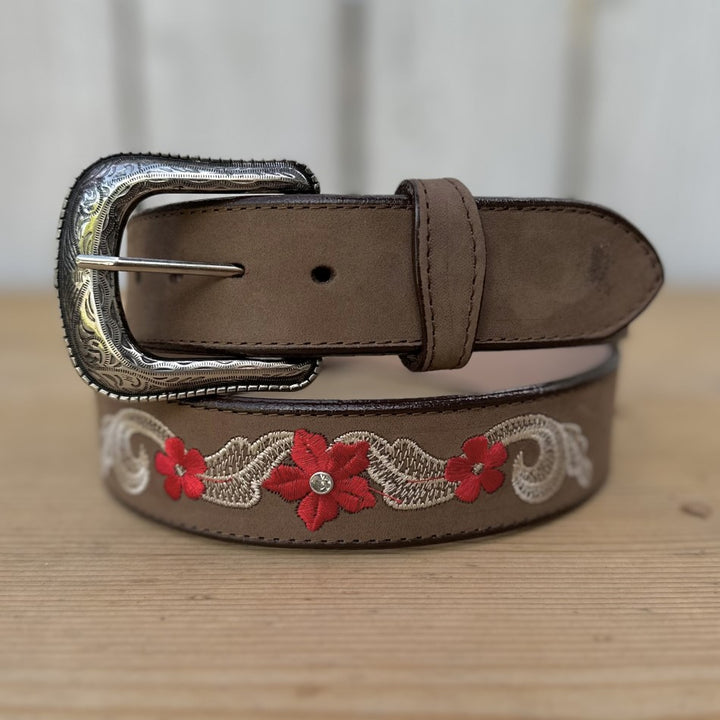 Cinturón Café "Flor de Campo" - Cinturones Vaqueros para Mujer