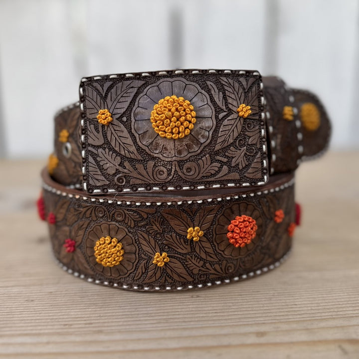 Cinturón Miel "Flor de Campo" - Cinturones Vaqueros para Mujer
