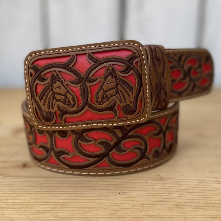 Cinturon Vaquero de Pita Chocolate con Rojo - Cinturones Vaqueros para Mujer