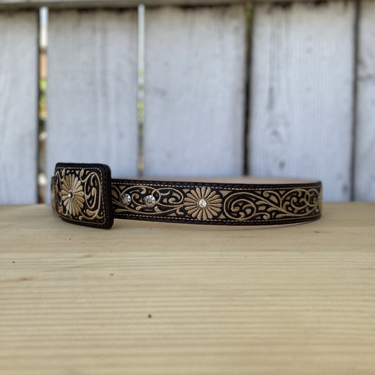 Cinturon Cincelado Cafe Personalizable - Cinturones Vaqueros