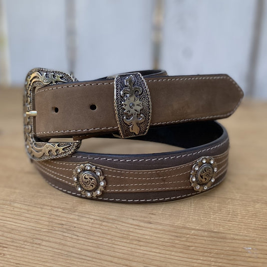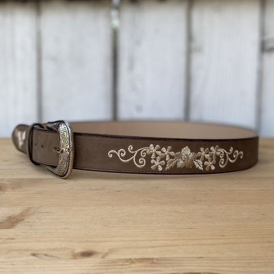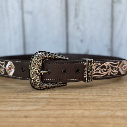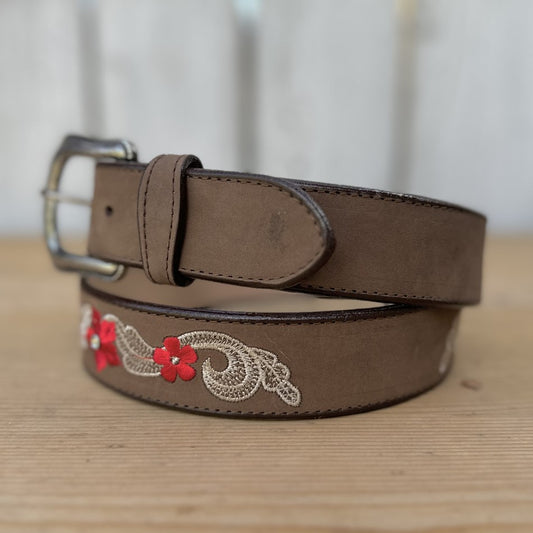 Cinturón Café "Flor de Campo" - Cinturones Vaqueros para Mujer