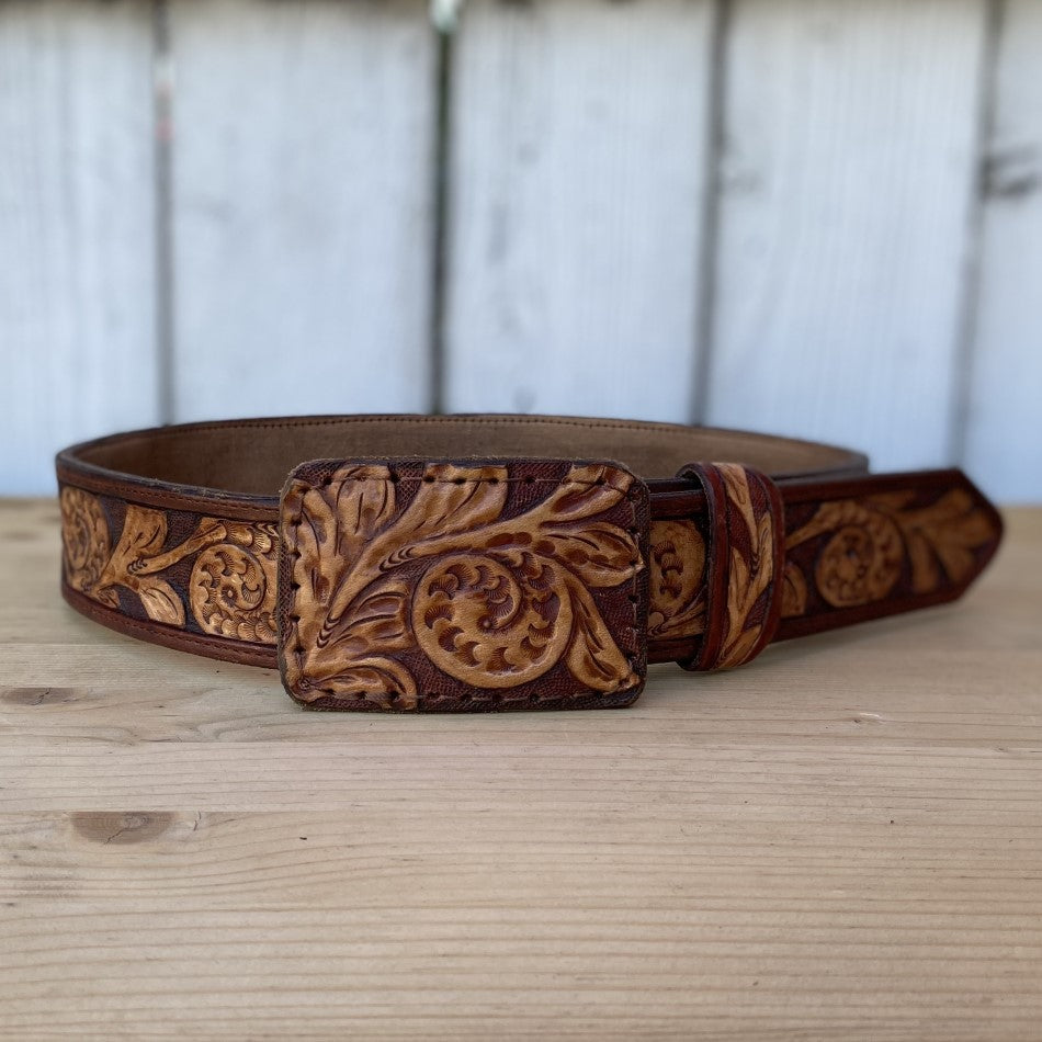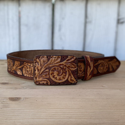 Cinturon Cincelado Cafe Personalizable - Cinturones Vaqueros