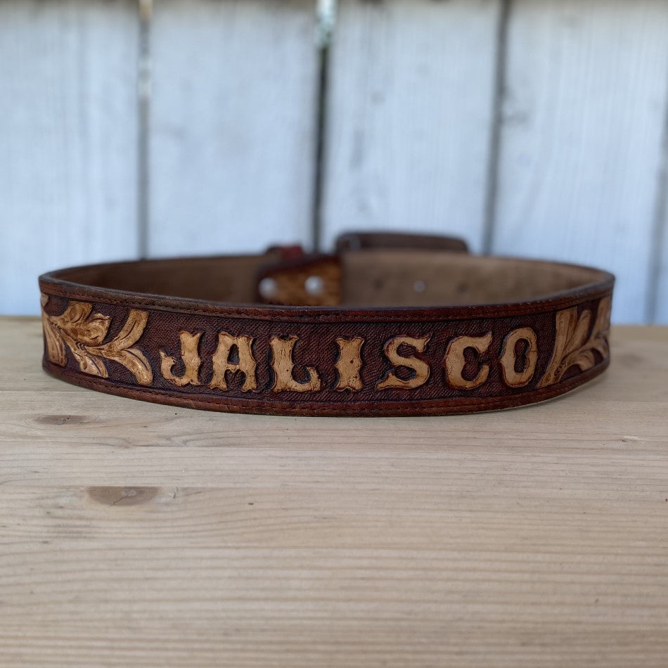 Las imágenes muestran un ejemplo de este cinturón con solamente el cinturon personalizado y no la hebilla. Sin embargo, si elige la opción "No Personalizado", recibira una versión del cinturón sin las personalizaciones que se ven en las imágenes. Cuesta lo mismo personalizar solo la hebilla o solo el cinturon o ambas partes. Para ver un ejemplo de como se ve un cinturon completamente personalizado, presione aqui.