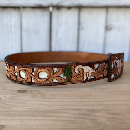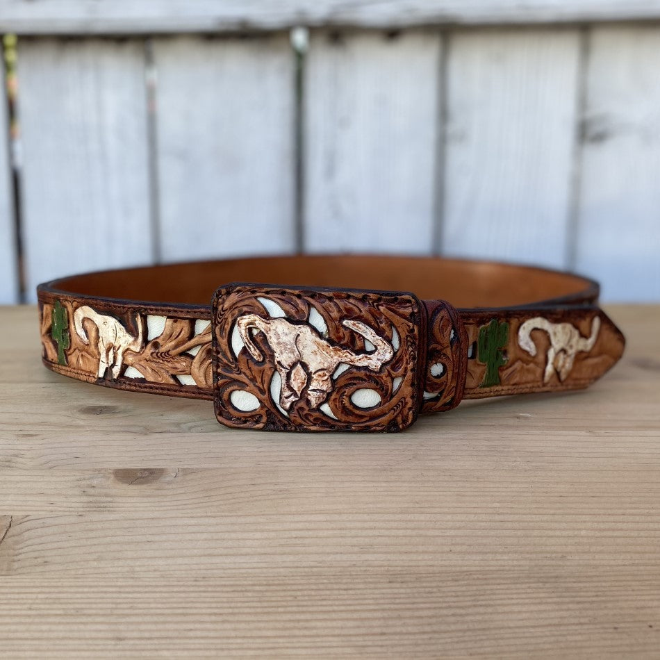 Cinturon Cincelado Cuernos Chuecos Personalizable - Cinturones Vaqueros