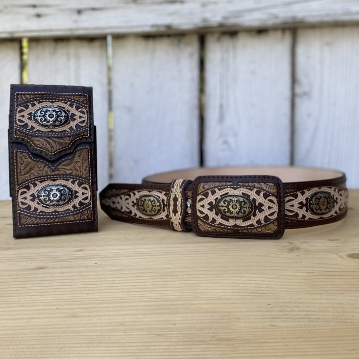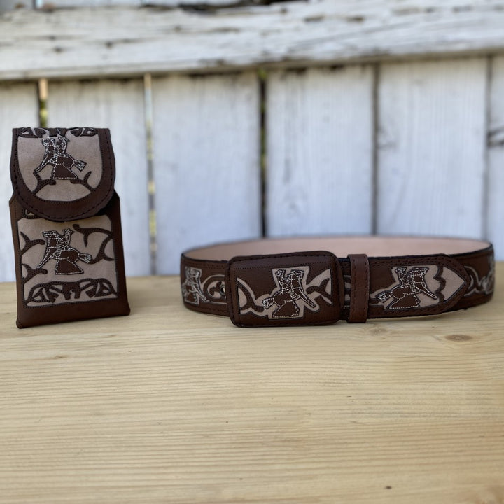CB Azteca-011 Cafe - Cinturon y Funda para Telefono Combo