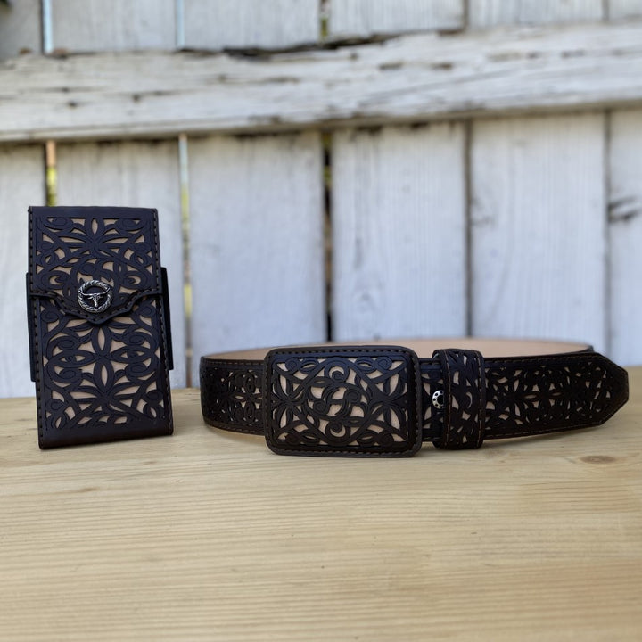 Cinturón Cortado a Láser "Chalino" Plateado y Funda Vaquera Cortada a Láser