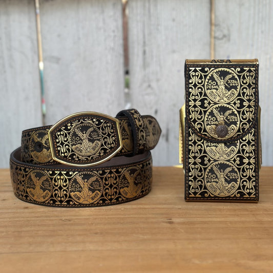 Cinturón Cortado a Láser "Centenario" Dorado y Funda Vaquera Cortada a Láser