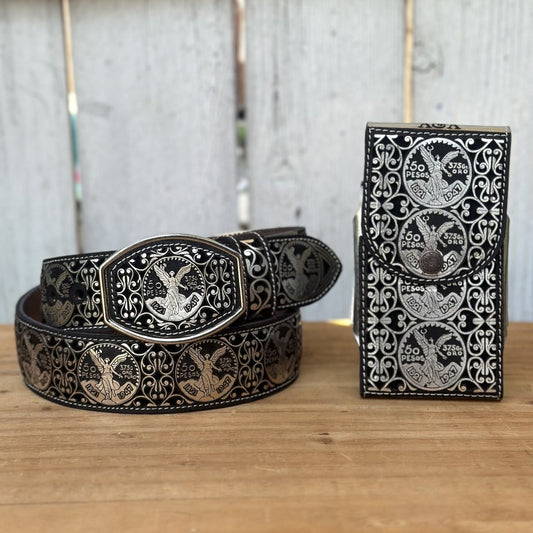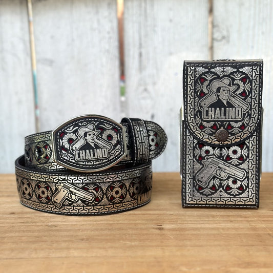 Cinturón Cortado a Láser "Chalino" Plateado y Funda Vaquera Cortada a Láser