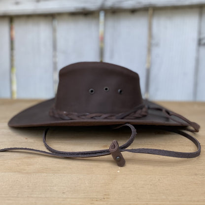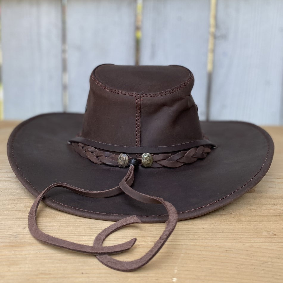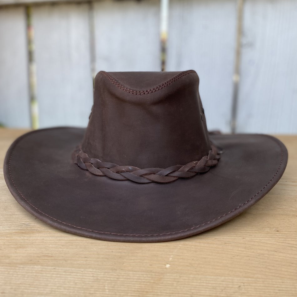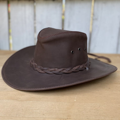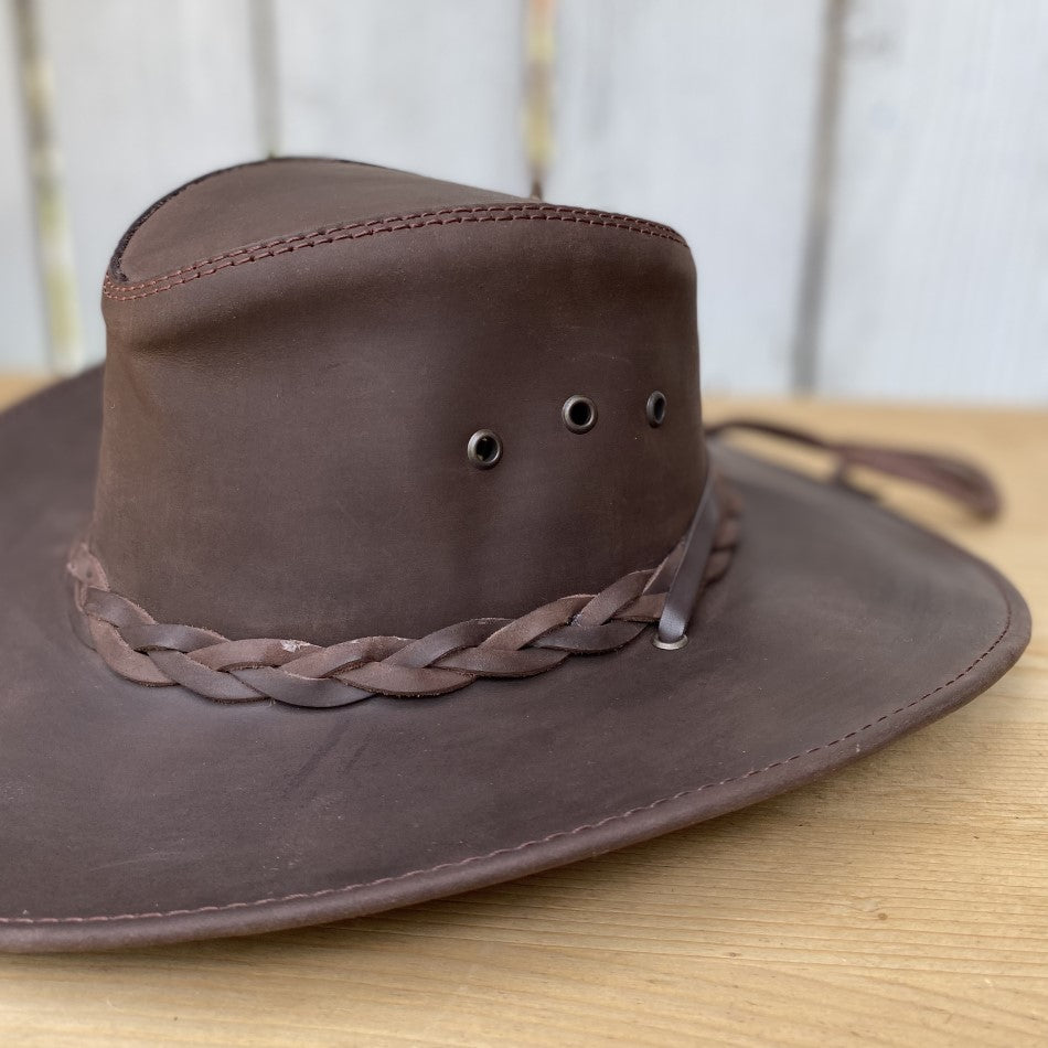 Sombrero de Cuero Cafe Oscuro con Toquilla Trenzada - Sombreros de Cuero