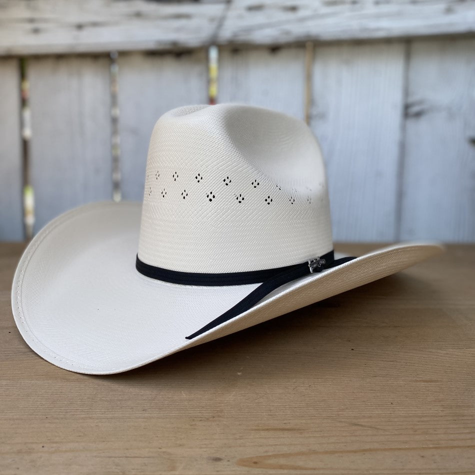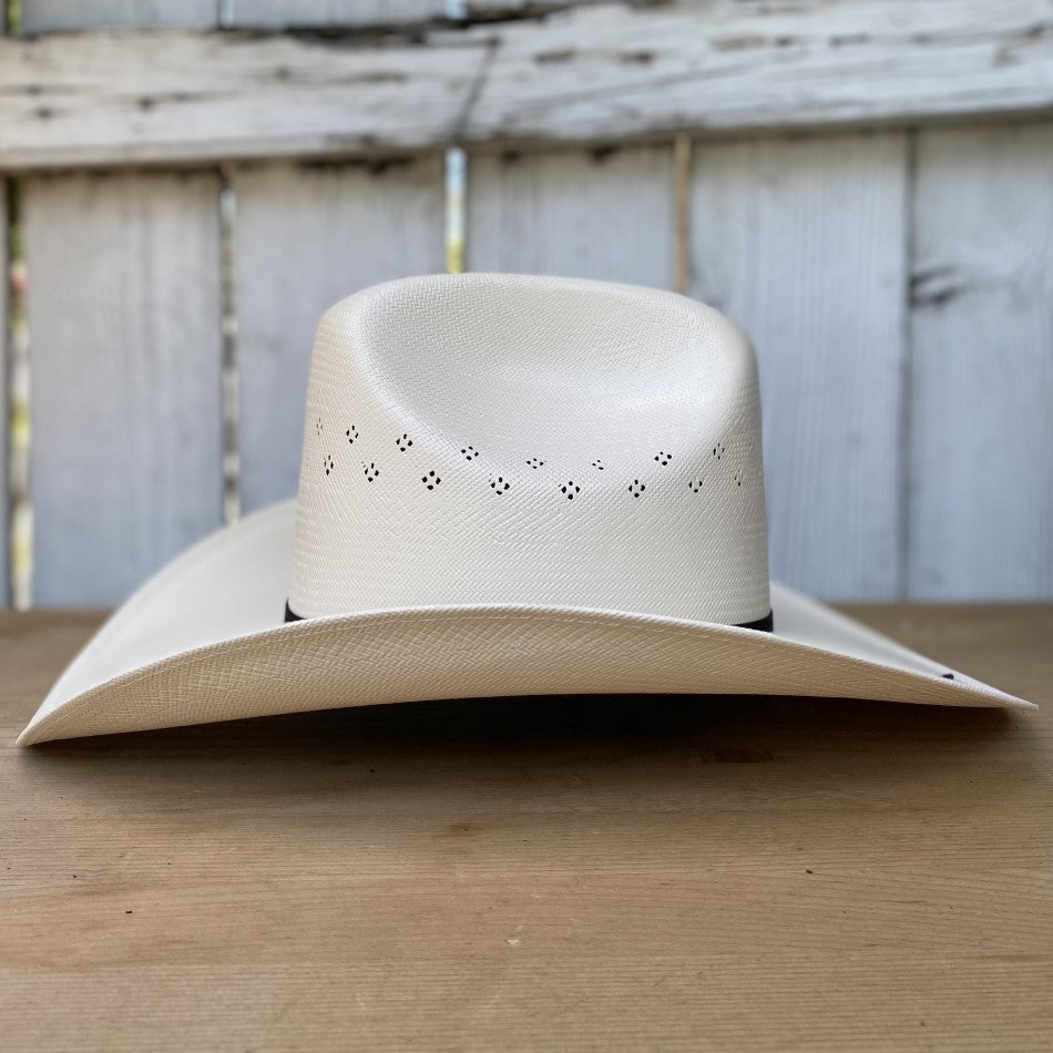 El sombrero 100X Sonora Flower de Tombstone Hats se destaca con su elegante copa alta de 5" y un diseño único de ventilación que recuerda a flores. Hecho en México, este sombrero combina estilo y funcionalidad, siendo perfecto para un look vaquero distintivo y confortable