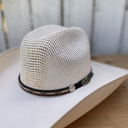 El sombrero 15X Copa Panal Chihuahua de Rocha Hats es el aliado perfecto para las aventuras al aire libre. Su diseño innovador con ventilación integral en la copa garantiza comodidad y frescura bajo el sol. Con una falda de 4 1/4" y una copa de 4 1/2", este sombrero combina funcionalidad y estilo. Hecho en México, es ideal para aquellos que buscan un sombrero resistente y práctico, adaptable a diferentes condiciones. La toquilla puede variar, añadiendo un toque único a cada sombrero.