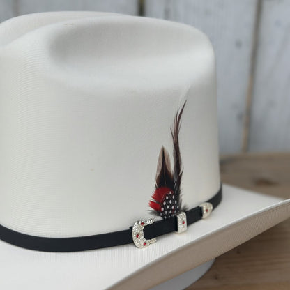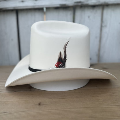 Explora la singularidad del sombrero 5000X El Viejon de Tombstone Hats, una pieza que destaca en cualquier colección. Elaborado con el exquisito material Telar Master 1x1, este sombrero de calidad 5000X fusiona lujo y carácter. Su copa alta de 5 1/2" y falda chica de 3 1/4", junto con la elegante pluma de decoración, crean un perfil distintivo y elegante. Hecho en México, este sombrero es perfecto para quienes buscan expresar su individualidad con un toque de finura en su estilo vaquero.