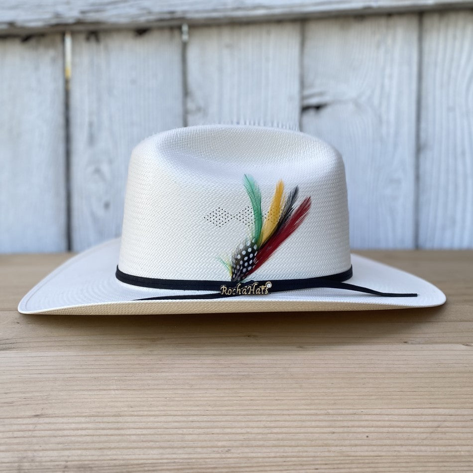 El sombrero vaquero 50X Fantasma de Rocha Hats se distingue por su versatilidad y apreciación entre los aficionados. Este modelo, adornado con una pluma decorativa de 4", agrega un toque especial. Con una falda de 3 1/4" y una copa de 4 1/2", este sombrero es una opción excelente tanto con pluma como sin ella. Hecho en México, es perfecto para aquellos que valoran un diseño clásico con un toque de personalidad.