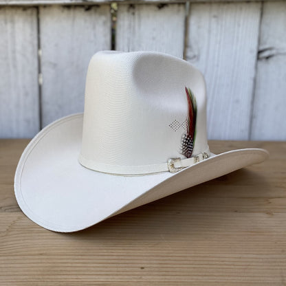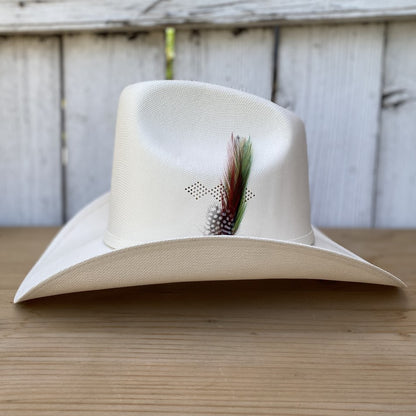 El sombrero 1000X Arizona Telar de Tombstone Hats destaca por su excepcional copa alta de 5 3/4" y una elegante pluma decorativa. Fabricado con el resistente Telar Master 1x1, este sombrero de calidad 1000X y falda de 3 1/2" es una representación de la artesanía mexicana, diseñado para quienes buscan un sombrero con presencia y calidad superior.