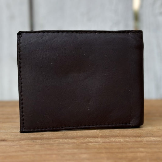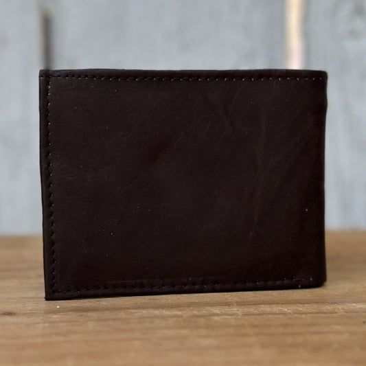 Brown Leather Western Wallet with Metallic Horse, Cowhide and Engravings