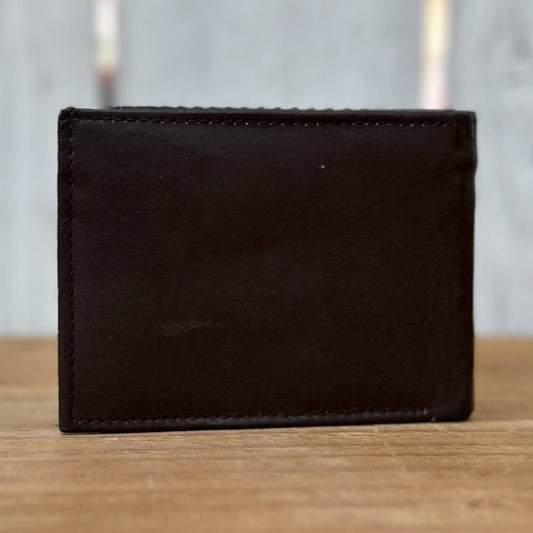 Brown Leather Western Wallet Metallic Horse, Half Cowhide and Half Leather