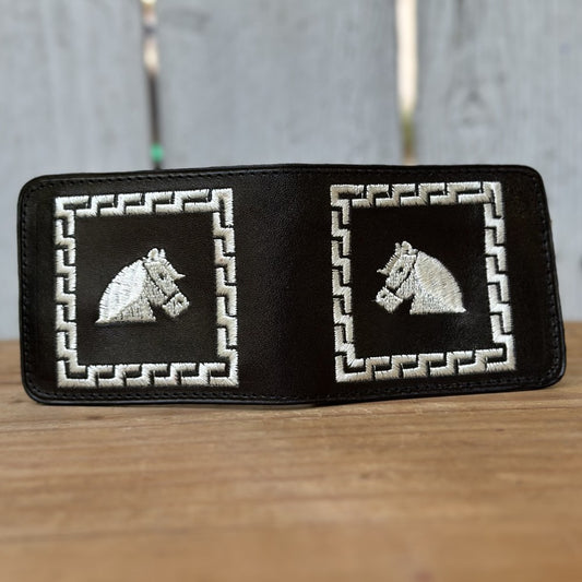 Black Leather Western Wallet with Embroidered Horse Head