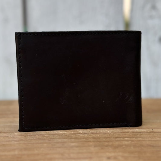 Black Leather Western Wallet with Embroidered Spur