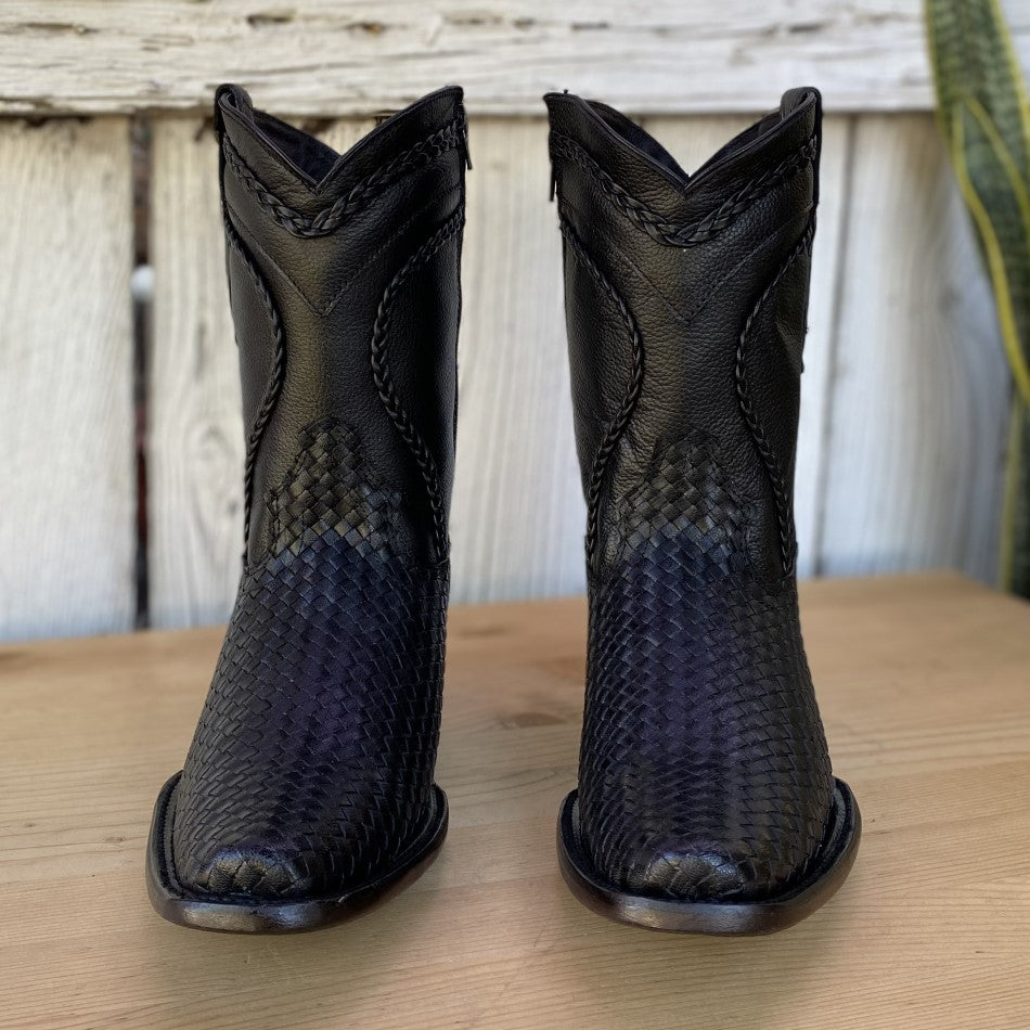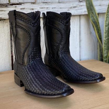 The JB-410 cowboy boot, in a classic black color, is a sample of Mexican art in the form of footwear. This model, made in the traditional petatillo style, represents the craftsmanship and intricate detail characteristic of artisanal Mexican boots. With a narrow square toe, it offers a contemporary touch without losing the classic essence. The combination of leather upper and lining ensures a comfortable and durable wearing experience, while the cowhide sole adds resistance and quality. Made in León, Mexico, the JB-410 is a perfect choice for the man who values authenticity and craftsmanship.