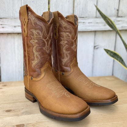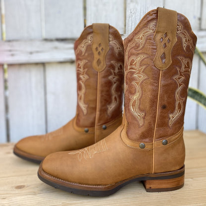 The JB-822 cowboy boot is a masterpiece of footwear construction, with an imposing presence that speaks of its durability and premium quality. Made with a top-level leather cut and leather insole, it provides comfort and firmness with every step. The rubber sole adds extra resistance for daily use. Made to last, this tan-colored boot is the epitome of Mexican reliability and craftsmanship, perfect for those looking for a sturdy and reliable boot. Made in León, Mexico, this boot is an investment in style and durability.