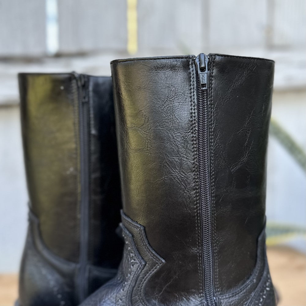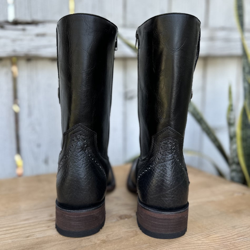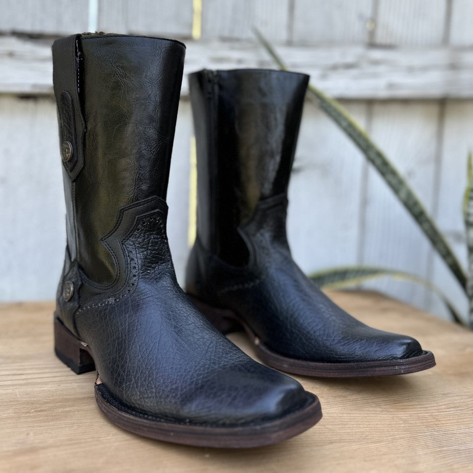 This is the K30 western boot, an essential piece in the wardrobe of fans of the western style. Its bull's neck construction and black color give it a bold presence and distinctive character. The 10-inch shaft height paired with a 1 1/2" heel provides a classic silhouette and exceptional comfort. The narrow square toe adds subtle elegance, perfect for pairing with both everyday outfits and special occasions. Lined in leather that guarantees long-lasting comfort and a cowhide sole that promises durability, this boot represents the authentic craftsmanship of León, Mexico, and is undoubtedly a reliable ally for the modern man.