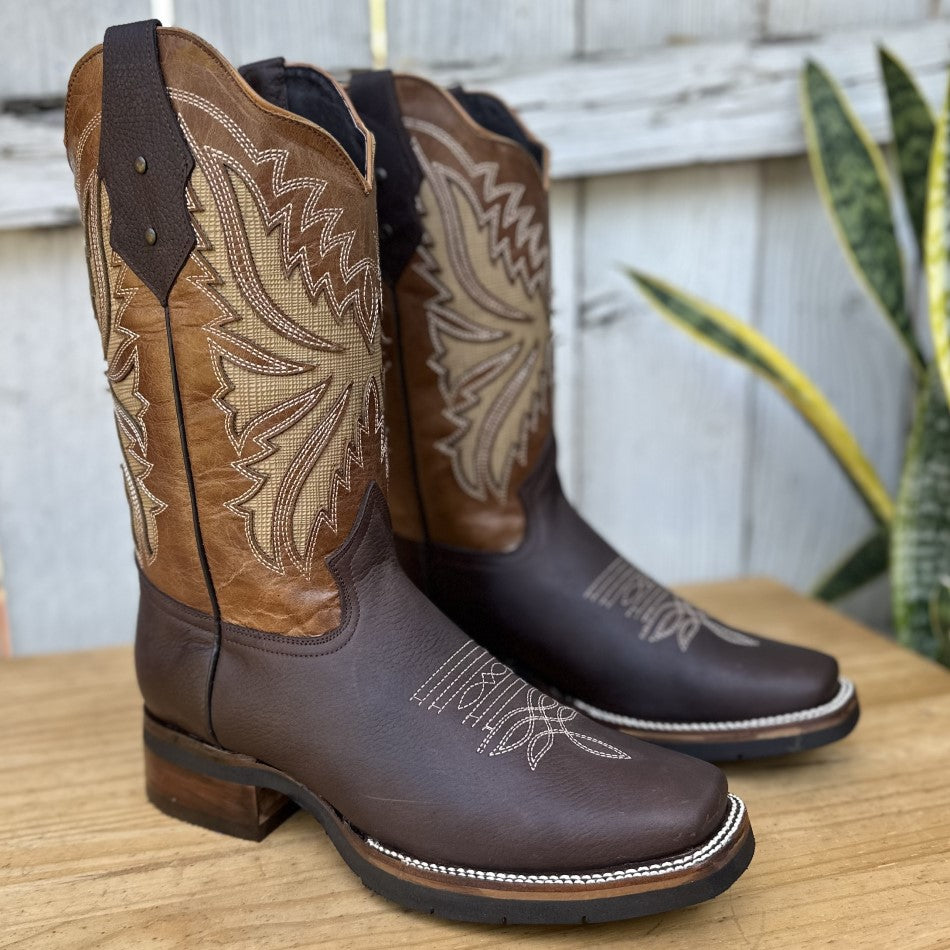 The SG-518 men's cowboy boot, presented in a brown color, is a premium quality boot that combines resistance and rustic style. Its rubber sole, designed to last, is ideal for facing any challenge, whether at work or in the field. The shaft, made of the highest quality leather, highlights the robustness and genuine character of the boot. With a square toe that provides a classic profile, this boot is an exceptional choice for men who appreciate strength and traditional design in their boots. Made in León, Mexico, the SG-518 is a true gem of western footwear, perfect for those looking for a reliable boot with a lot of personality.