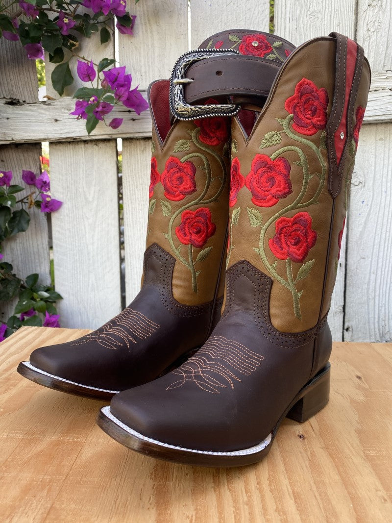 JB-1502 Chocolate and Red - Boot and Belt Combo
