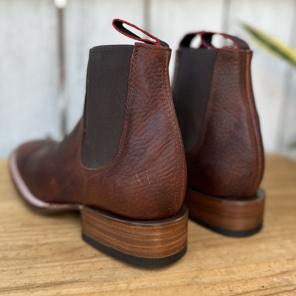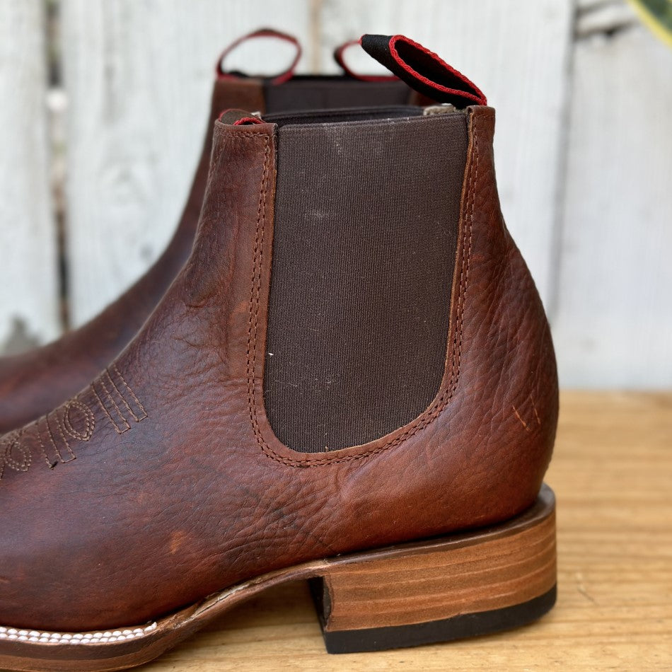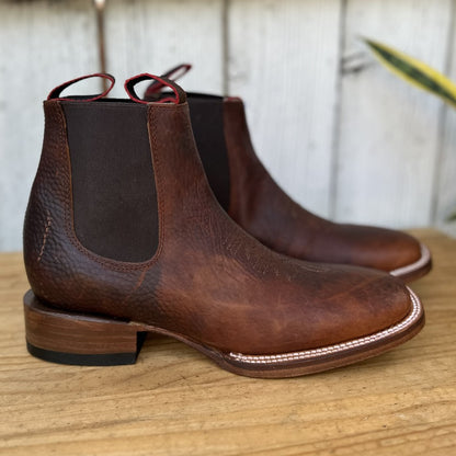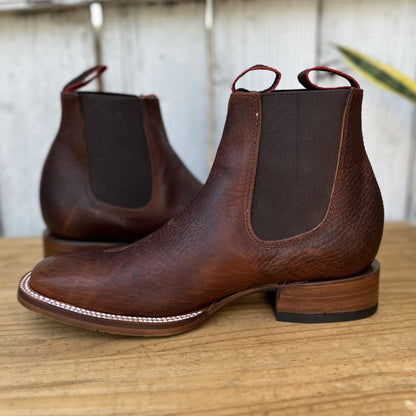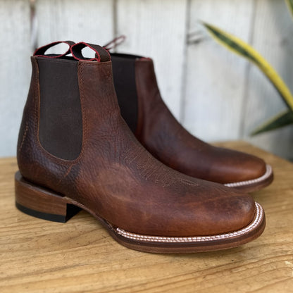 This is the 725 D'Carlo ankle boot, an ideal pair for those looking for resistance and a rustic style. In a shedron color, this ankle boot reflects robustness and durability. Its leather-lined construction provides both comfort and support, while the wide square toe offers additional foot space, ensuring all-day comfort. The cowhide sole, known for its resistance to wear, ensures a long useful life of the footwear. Made to meet the challenges of everyday life, the 725 D'Carlo is the perfect choice for the man who values functionality and authentic design in his footwear.