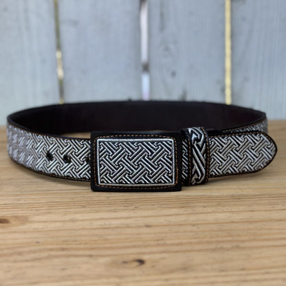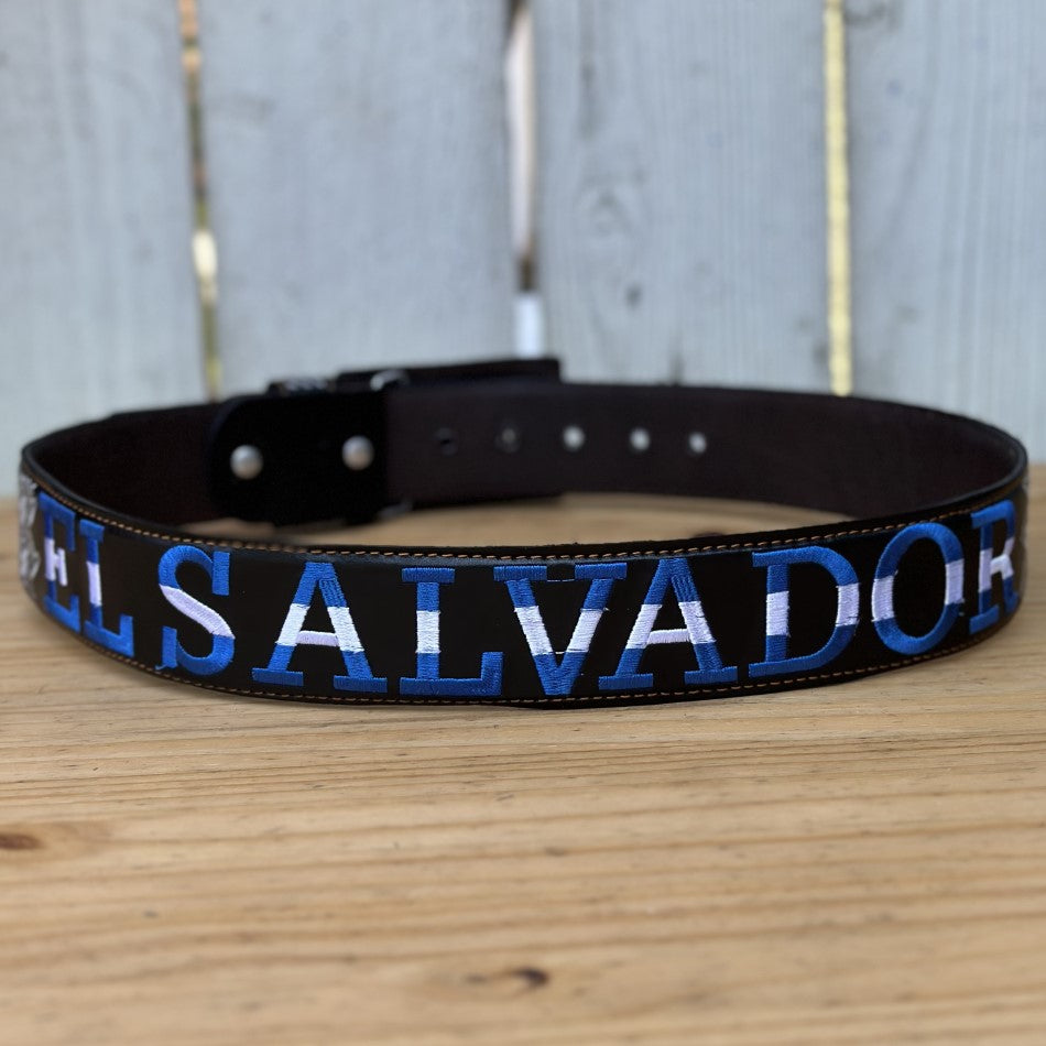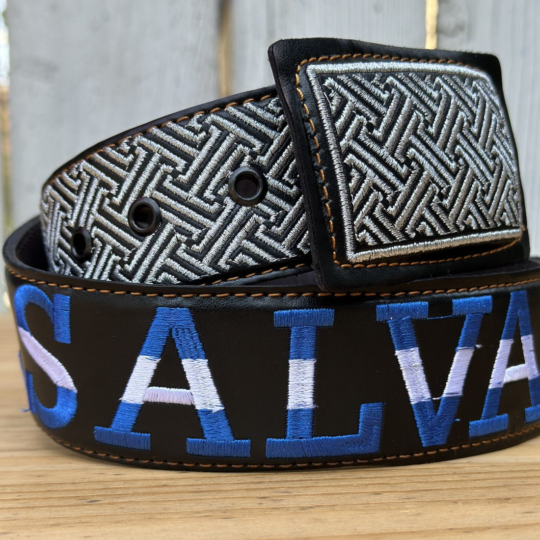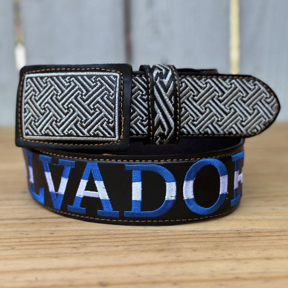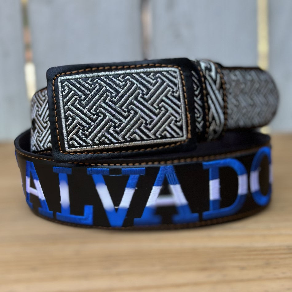 This is the personalized Belt with El Salvador, a tribute to the homeland embodied in an accessory for daily use. Measuring 2 inches wide and made of 100% leather, it features a square buckle and distinctive embroidery that enhances national pride. This belt made in Mexico is not just a fashion item, it is a way to bring the Salvadoran spirit wherever you go.