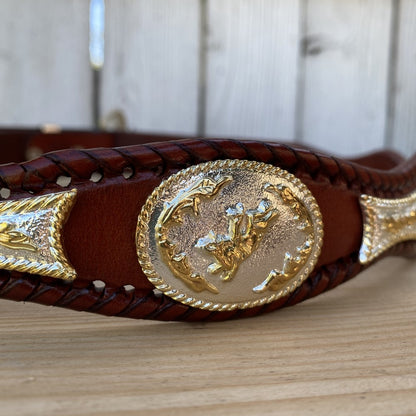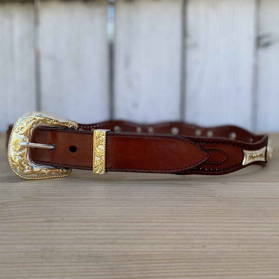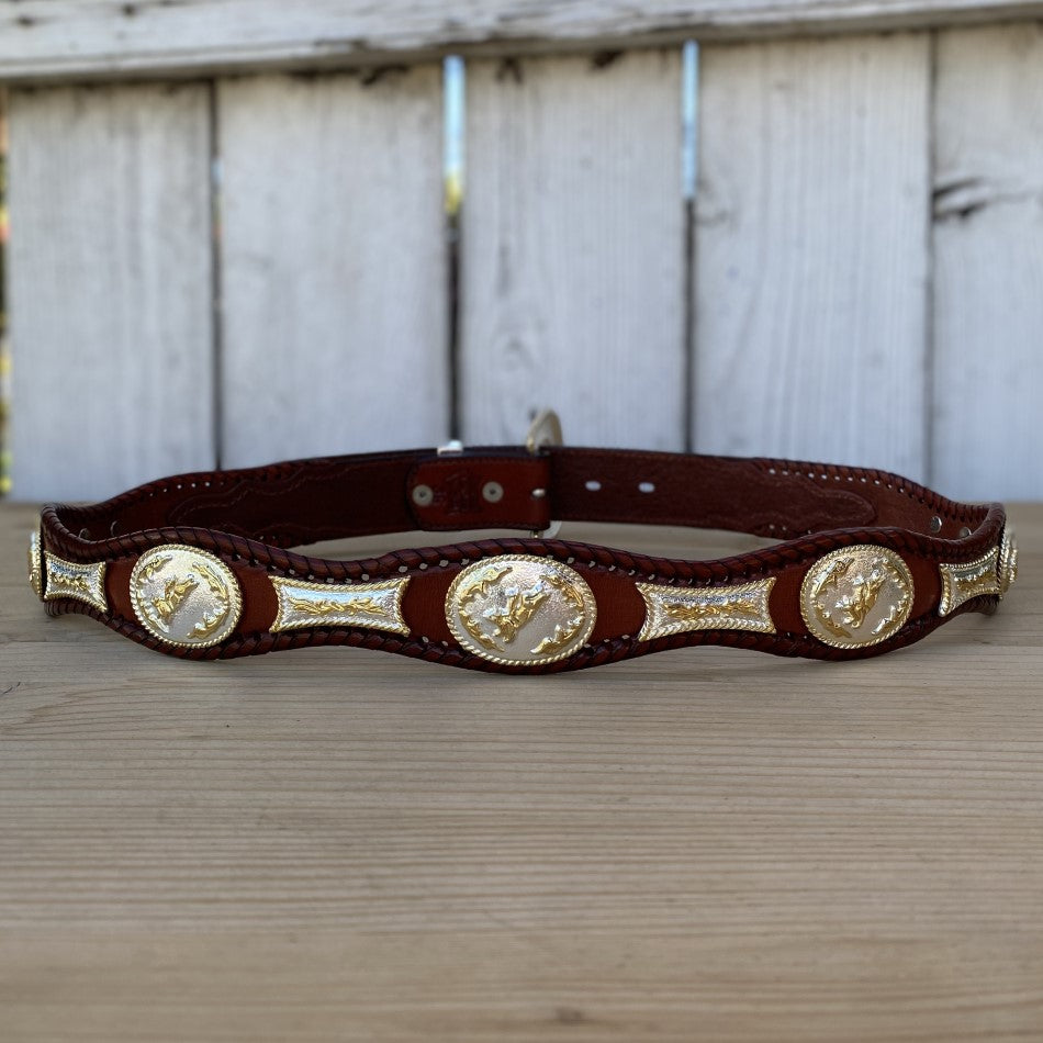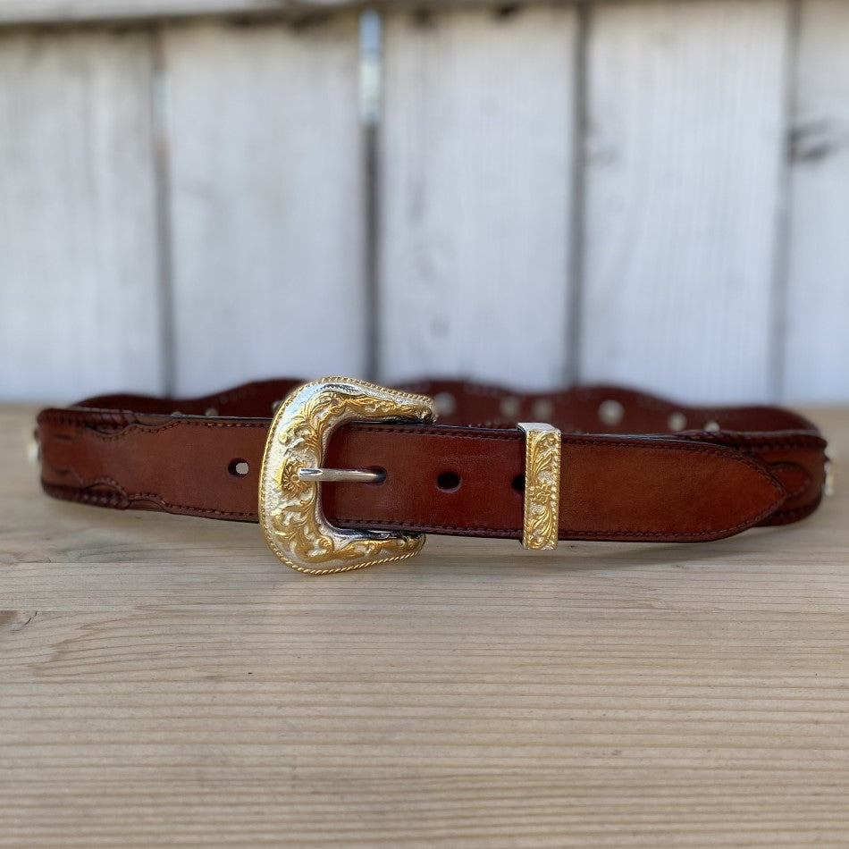 Cognac-Colored Concho Western Belt Made with Genuine Leather