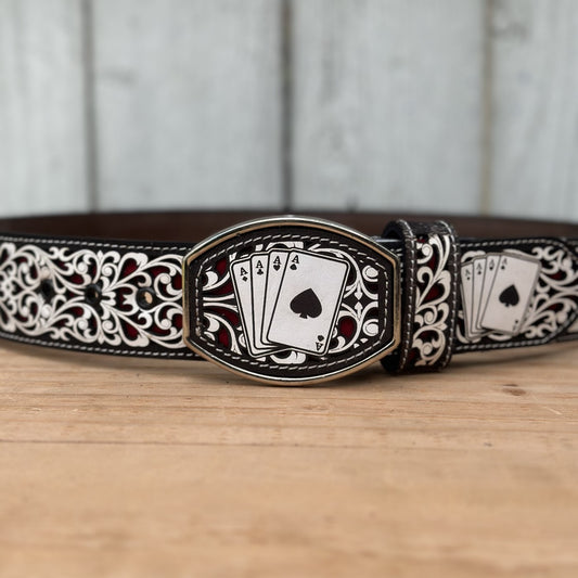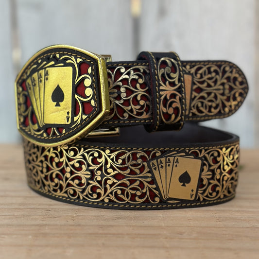 Golden 4 Aces Laser Cut Belt - Western Belts for Men