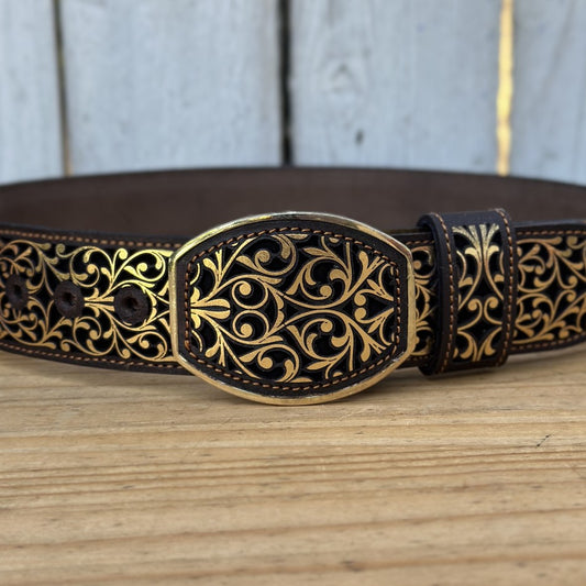 Golden Rameado Laser Cut Belt - Western Belts for Men